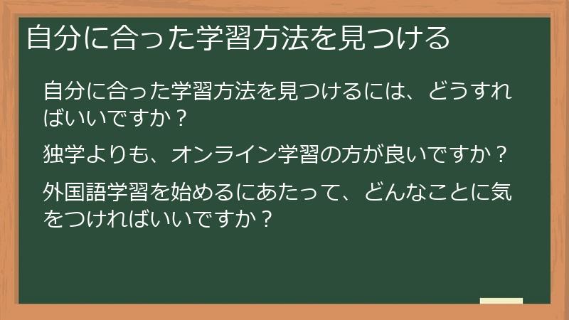 自分に合った学習方法を見つけるには、どうすればいいですか?