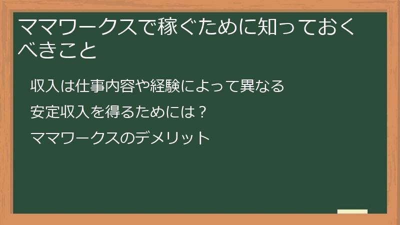 この章では、ママワークスで働く際に知っておくべきこと、特に収入に関する注意点などを詳しく解説していきます。