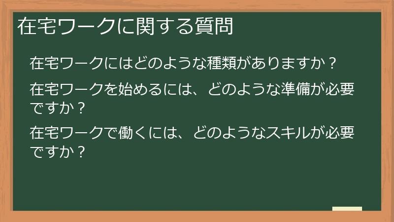 この項目では、在宅ワークに関するよくある質問と回答をまとめました。