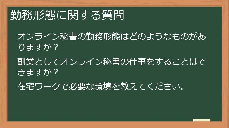 オンライン秘書の仕事全般に関する、その他のよくある質問をまとめました。
