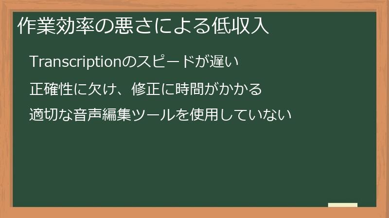 具体的な解決策としては、作業スピードの向上、高単価案件の獲得方法、そしてScribie以外の選択肢まで、幅広く網羅しています。