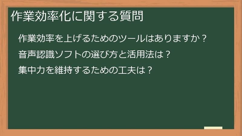 本セクションでは、作業環境の構築から、おすすめのツール紹介、そして集中力を高めるためのテクニックまで、具体的な方法を紹介します。 効率的な作業は、Scribieで成功するための重要な要素です。