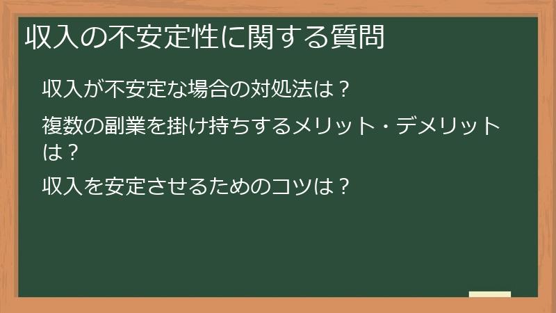 - メリット:収入の安定化、スキルの多様化、モチベーション維持