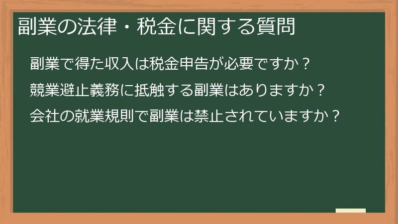 この節では、副業とキャリアプランに関するよくある質問とその回答をまとめました。