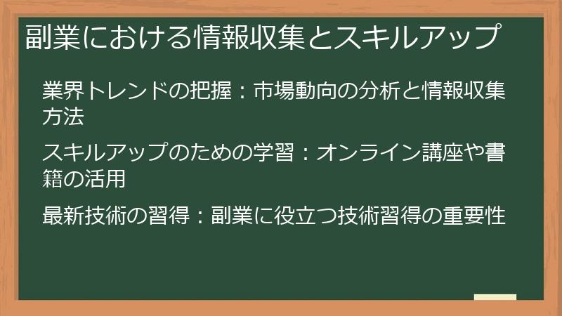副業を成功させるためには、継続的な情報収集とスキルアップが不可欠です。