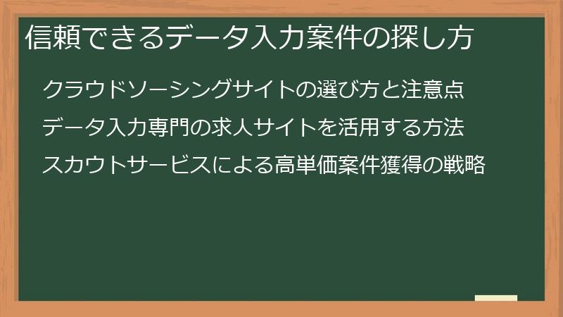 この章では、安全で質の高いデータ入力案件を見つけるための具体的な方法を解説します。
