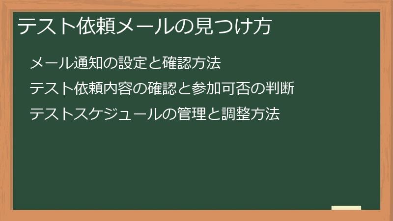 - デバイスとソフトウェア: テストによっては、特定のデバイスやソフトウェアの使用が求められる場合があります。 テスト依頼メールで指定されたデバイスやソフトウェアを使用しましょう。