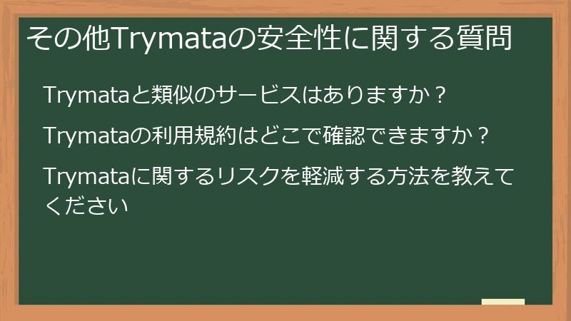 - Trymataに関するよくある質問と回答集:安全性と信頼性について徹底解説