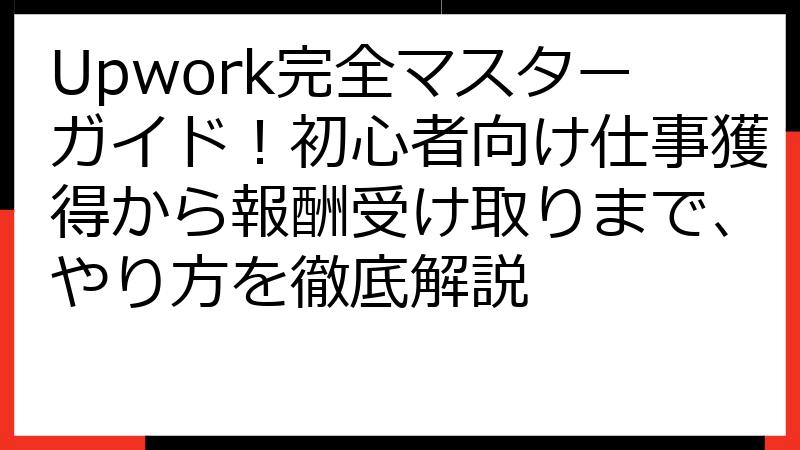 Upworkで成功する!初心者から上級者まで、仕事獲得から報酬受け取りまで完全ガイド