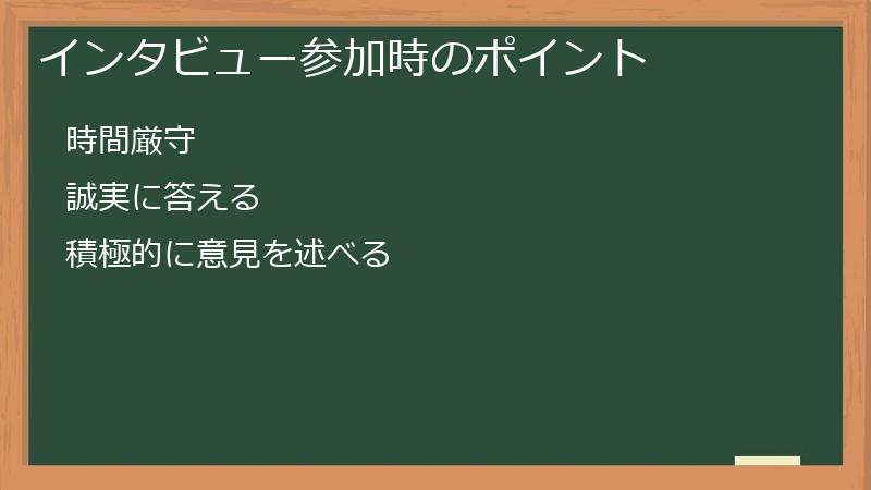また、情報収集をすることで、インタビューに対する理解を深めることができます。 - インタビューの練習をする: 時間があれば、事前にインタビューの練習をしておきましょう。