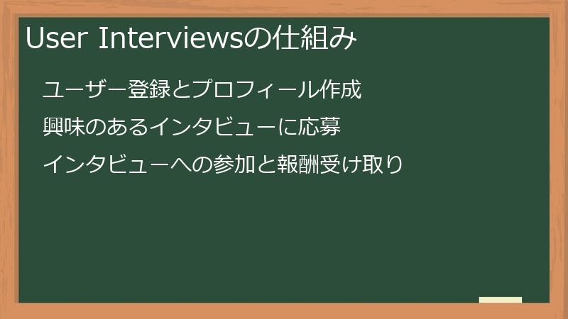 User Interviewsは、ユーザーの意見や感想を収集することで、製品やサービスの改善や開発に役立てるためのプラットフォームです。