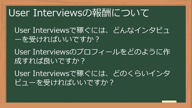 User Interviewsで稼ぐには、どんな情報が必要ですか?