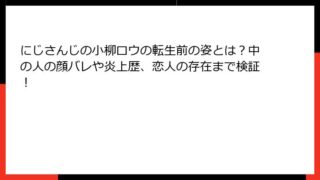 にじさんじ にじさんじの小柳ロウの転生前の姿とは?中の人の顔バレや炎上歴、恋人の存在まで検証! にじさんじの白狼剣士、小柳ロウの「中の人」を徹底解剖!謎多き素顔に迫る にじさんじ所属のVTuber、小柳ロウ。魔を裂き妖を切る冷酷な剣士としてデビューした彼は、ぐうたらでめんどくさがり屋な白狼の設定がファンを魅了しています。2023年... 2025.10.19 にじさんじ