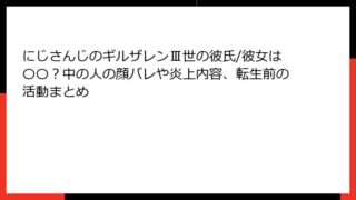 にじさんじ 中の人の正体判明?にじさんじの人気VTuber「七海」の前世・炎上の真相と彼氏/彼女の噂も全力検証 にじさんじの魅力的なVTuber、七海の「中の人」を探る VTuber界の多様なライバーたちの中でも、にじさんじに所属する七海(Nana7mi)は、そのエネルギッシュなパフォーマンスと親しみやすいキャラクターで多くのファンを魅了していま... 2025.10.20 にじさんじ