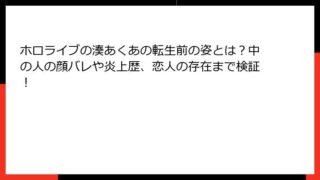 ホロライブ ホロライブの湊あくあの転生前の姿とは?中の人の顔バレや炎上歴、恋人の存在まで検証! ホロライブの伝説的アイドルゲーマーメイド、湊あくあの「中の人」完全ガイド ホロライブプロダクションに所属するVTuber、湊あくあ。ゆめかわいいメイド服に包まれた彼女は、アイドルさながらの歌唱力と神業級のゲームスキルでファンを魅了し続け... 2025.10.20 ホロライブ