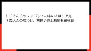 にじさんじ にじさんじのレン ゾットの中の人はリア充?恋人との匂わせ、前世や炎上騒動も総検証 にじさんじENの異星王子、レンゾットの中の人を徹底解剖!ミステリアスな素顔に迫る にじさんじENの人気ライバー、レンゾット(Ren Zotto)。異世界から来た凶悪な異星の王子という設定で、独特の低音ボイスと音楽センスがファンを魅了して... 2025.10.19 にじさんじ