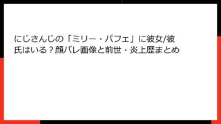 にじさんじ にじさんじの「ミリー・パフェ」に彼女/彼氏はいる?顔バレ画像と前世・炎上歴まとめ にじさんじENの魅力的な化け猫、ミリー・パフェの中の人を探る にじさんじENに所属するVTuber、ミリー・パフェ。地獄を忍び歩く化け猫というユニークな設定でデビュー以来、ファンを魅了し続けています。2021年のデビューから、ゲーム配信... 2025.10.18 にじさんじ