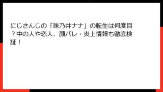 にじさんじ所属の人気VTuber、珠乃井ナナさん。彼女の可愛らしい外見と美しい歌声、そして独特のユーモアあふれるトークでファンを魅了し続けています。しかし、VTuberの魅力の裏側には「中の人」と...