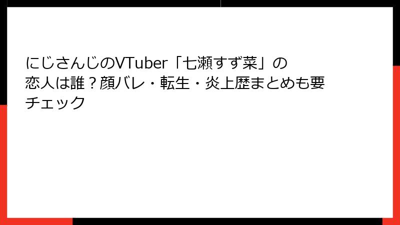 - ファンコミュニティの暗黙のルール: にじさんじファンは「中の人」掘り下げを控える傾向。Xで「七瀬すず菜 顔バレ」と検索しても、ジョークや二次創作の話題のみ。