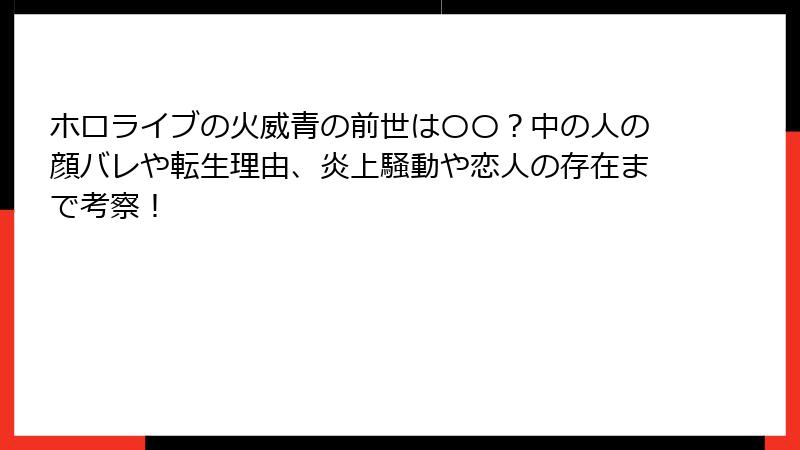 - 火威青への波及:前世特定後、「ホロライブが過去犯をスカウト?」と事務所批判に発展。