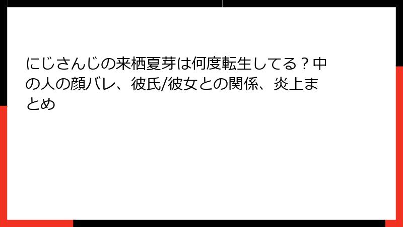 2025年10月現在、来栖夏芽の炎上歴は完璧なゼロ。アニメ化や新作リリースでさらにブレイクする中、このクリーンイメージが持続するかが注目点だ。VTuber界の厳しさを知るファンとして、彼女の「ポンコツだけど真っ直ぐ」な姿勢を応援したい。なつめいと(ファン名)のみなさん、炎上なんて言葉、来栖夏芽の辞書にないはず! これからも羊さんを愛で続けよう。