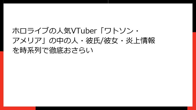 ホロライブEnglish -Myth-の看板VTuber、ワトソン・アメリア。タイムトラベラー探偵のキャラとFPSゲームの神業、独特の「gremlin」ユーモアで世界中のファンを魅了してきました。しかし、2020年のデビューから2024年の配信活動終了まで、彼女もまたVTuber界隈で避けられない「炎上」騒動に巻き込まれたことがあります。この記事では、アメリアに関連する主な炎上事件を時系列で振り返り、その背景や影響を詳しく解説します。VTuberのプライバシーを尊重しつつ、公式情報やコミュニティの反応を基に、客観的に掘り下げます。なお、全て非公式情報は推測として扱います。