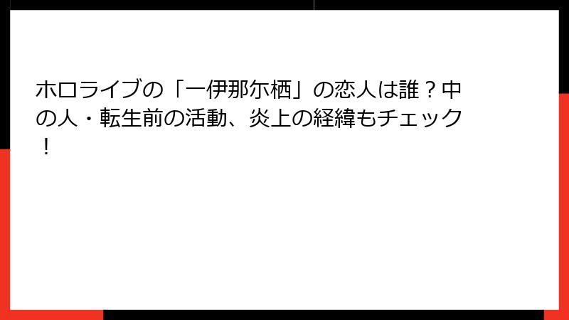 2. 海外在住の影響:Naguさんはアメリカ在住とされ、バイリンガル。一伊那尓栖の忙しい配信スケジュールから、恋愛の時間を確保するのは難しいとの見方。
