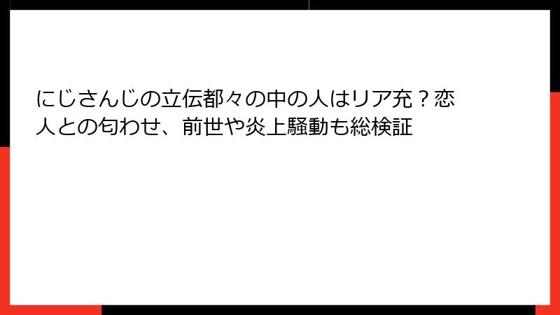 - ファンの暗黙の了解: にじさんじファンコミュニティでは、前世探しを控える文化が根付いており、過度な詮索が少ない。