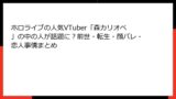 - 背景: 2022年2月、潤羽るしあのプライベートに関する情報漏洩騒動が発生。彼女の行動がファンや関係者間で議論を呼び、ホロライブ全体に批判が飛び火。
