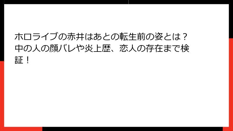 顔バレは、VTuberにとって致命的な危機になり得ますが、赤井はあとはこの試練をチャンスに変えました。以下に、その影響と対応をまとめます。