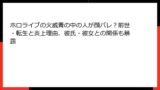 赤井はあとの2度目の炎上は、直接的な原因ではなく、同僚の潤羽るしあ(当時ホロライブ3期生)の騒動に巻き込まれた形です。この事件は、ホロライブ内部の人間関係やファンの過熱ぶりを示すものでした。