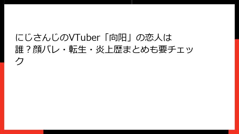 - 前世とのリンク:向陽さんの前世が元歌い手や個人配信者と推測されており、過去の活動から顔写真が流出する可能性が議論される。ただし、具体的な証拠はほぼない。
