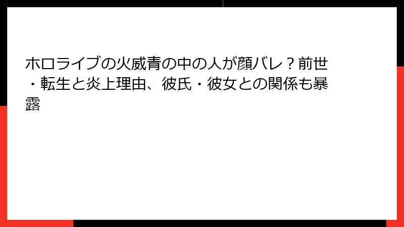 これらのエピソードは、火威青の顔バレを直接裏付けるものではありませんが、ファンの好奇心を刺激。運営の厳格な管理により、明確な流出は防がれました。