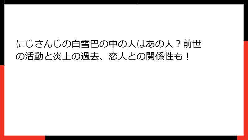 白雪巴の炎上騒動は、小規模な誤解やハプニングに留まり、彼女のクリーンなイメージを損なうものではありません。ドSなキャラ、健屋花那との百合、丁寧なファン対応が、トラブルを乗り越える力になっています。あなたは白雪巴のどのエピソードが印象的? 炎上を笑い飛ばす「駄犬」魂で、コメント欄で語り合いましょう! 次回は、ASMR配信の名場面特集でお会いしましょう!