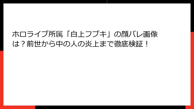 ホロライブプロダクションの人気VTuber、白上フブキ。白髪の狐耳少女として2018年にデビューし、ゲーム実況、歌、陽気なトークで世界中のファンを魅了しています。2025年現在、YouTubeチャンネル登録者数は250万人を超え、ホロライブの「大黒柱」として君臨する彼女ですが、VTuberの宿命ともいえる「顔バレ」に関する話題は、ファンやネット住民の好奇心を掻き立てます。この記事では、白上フブキの「顔バレ」にまつわる噂や真相、ファンの反応を詳しく探ります。リンクやURLは一切使用せず、読み応えのある形で、フブキの素顔を巡るミステリーに迫ります。こんこんきーつね!