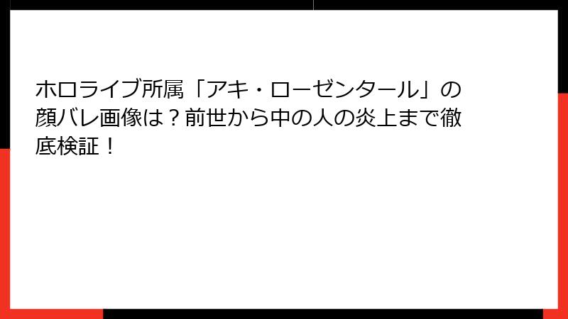 アキ・ローゼンタールの顔バレ騒動:癒し系VTuberのミステリーを追う