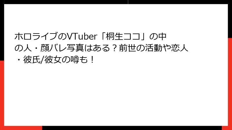 ホロライブプロダクションに所属するVTuberとして一時代を築いた桐生ココ。ドラゴンの姿で人間界に降臨し、朝活配信やゲーム実況でファンを魅了した彼女ですが、その「中の人」(前世や実在の人物)が誰なのか、長年ファンの間で熱く語り継がれてきました。今回は、桐生ココの魅力に迫りつつ、中の人の詳細を深掘りします。彼女の活動から推測される背景、共通点、そして現在に至るまでの軌跡を、読み応え満載でお届け! 伝説の始まりから今まで、すべてを紐解いていきましょう。
