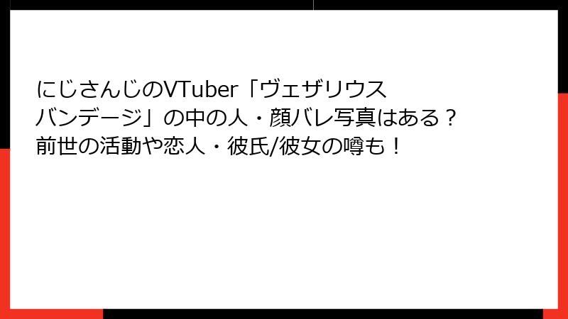 にじさんじEN所属の人気VTuber、ヴェザリウス・バンデージ。2023年6月のデビュー以来、その魅力的なキャラクターと多言語スキルでファンを魅了し続けています。彼の「中の人」—つまり、画面の向こうで声を演じる本当の人物—について、ネット上ではさまざまな憶測が飛び交っています。しかし、公式に明かされることはなく、VTuber文化の神秘性を象徴する存在です。この記事では、入手可能な情報をもとに、彼の背景や推測される経歴、ファンの間で囁かれる噂を深掘りします。プライバシーを尊重しつつ、読み応えのあるストーリーとしてお届けしましょう。