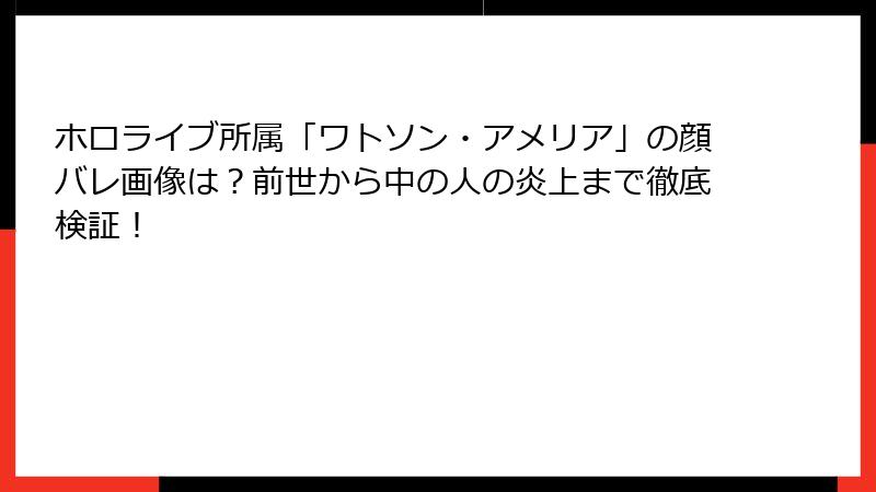 ワトソン・アメリアの顔バレ騒動:探偵の仮面に隠された真相を追う