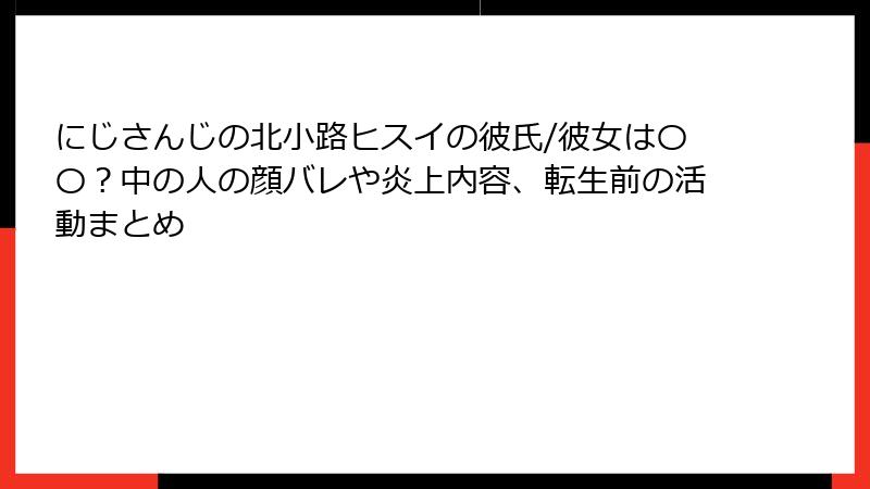 北小路ヒスイの「彼氏(彼女)」「恋人」事情を深掘り:にじさんじVTuberの愛の重さとミステリー