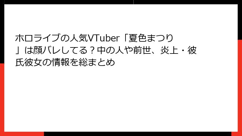 ホロライブプロダクションの1期生として2018年にデビューしたVTuber、夏色まつり。元気で少し小悪魔的なキャラクターと、ゲーム実況や歌で魅せるパフォーマンスで、チャンネル登録者数100万人超の人気を誇ります。しかし、VTuber文化においてファンの好奇心を掻き立てる話題の一つが「顔バレ」です。夏色まつりの中の人とされる人物の素顔がネット上で話題になり、ファンの間で議論を呼んでいます。この記事では、夏色まつりの顔バレに関する噂、背景、ファンの反応を詳しく探り、VTuberのプライバシーと魅力のバランスについて考察します。公式情報ではない推測を基に、ブログ形式で読み応えのある内容をお届けします。