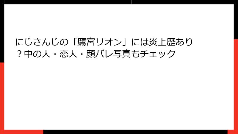 にじさんじVTuber鷹宮リオンの顔バレ騒動:中の人の素顔を巡る真相