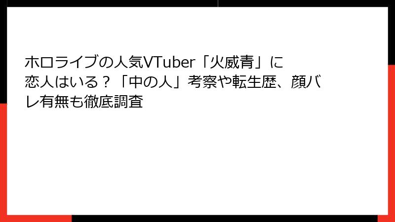 ホロライブのVTuberは恋愛トークを控える傾向にあり、火威青も例外ではありませんでした。しかし、ファンは彼女のプライベートに興味津々。果たして恋人の影はあったのでしょうか?