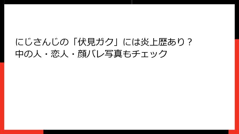 にじさんじ所属のVTuber、伏見ガクは、チャラくて親しみやすいキャラクターと優しい人柄で、ファンの心を掴んで離しません。2018年のデビュー以来、朝活配信「おはガク!」やホラーゲーム実況、歌ってみた動画などで人気を博し、にじさんじ2期生の中心的存在として活躍しています。しかし、VTuberの世界では「炎上」が注目を集める話題の一つ。伏見ガクは、にじさんじの中でも比較的クリーンなイメージですが、果たして彼に炎上騒動はあったのか? この記事では、伏見ガクの炎上に関する噂やエピソードを、ネットやXの情報を基にブログ形式で詳しく掘り下げます。炎上歴は本当にゼロなのか、それとも隠された騒動があるのか、真相に迫ります。
