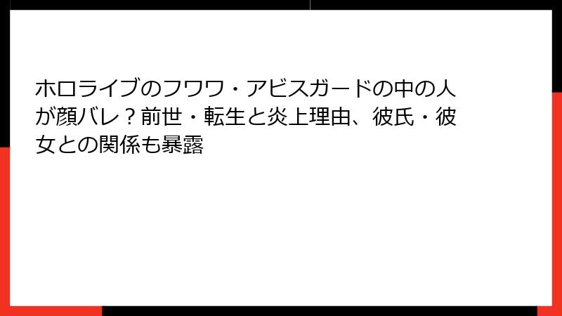 結論から言うと、2025年10月25日現在、フワワ・アビスガードの「顔バレ」に該当する確実な情報は一切存在しません。ホロライブ所属VTuberとして、彼女のプライバシーは厳重に守られており、公式な写真や動画、漏洩した個人情報はゼロ。ファンの間で囁かれる「中の人」候補についても、顔写真や明確な証拠は出てきていません。以下に、顔バレがない理由を整理します。