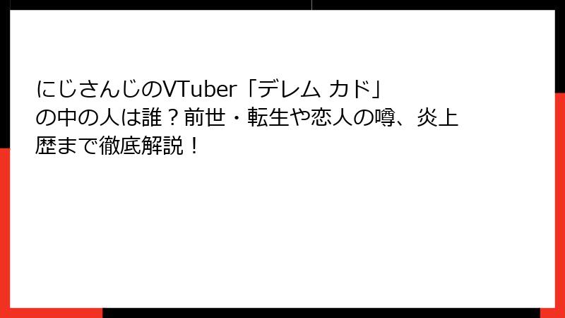 VTuberシーンで人気を博すにじさんじのライバー、デレム・カド。魔法少女をモチーフにした可愛らしいキャラクターで、ファンを魅了し続けています。でも、VTuberの魅力はアバターだけじゃありませんよね? 裏側で支える「中の人」の存在が気になるところです。この記事では、デレム・カドの「中の人」について、入手可能な情報や推測を基に詳しく掘り下げてみます。公式には明かされていない謎めいた部分も多いですが、配信スタイルや声質から読み解けるヒントを、読み応えたっぷりにまとめました。さあ、魔法のヴェールをかき分けて、深淵を覗いてみましょう!