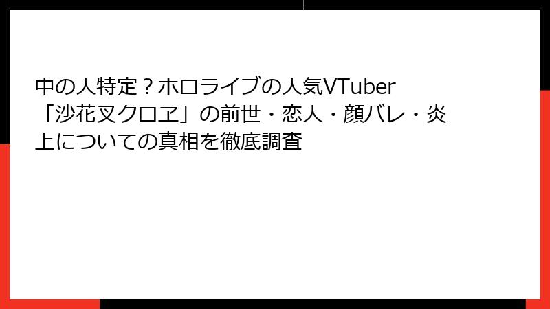 ホロライブプロダクションに所属するVTuber、沙花叉クロヱ(さかまた くろえ)。2021年11月29日にデビューした彼女は、秘密結社holoXの「掃除屋」としてインターン生の役割を担うシャチをモチーフにしたキャラクターで、瞬く間に国内外のファンを魅了しました。独特の柔らかい声質と、時折見せるぶっ飛んだトークが魅力のクロヱですが、VTuber界隈で常に話題になるのが「中の人」の存在です。