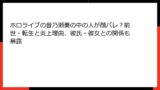 • 過去の匂わせ: インディー時代に「遠距離恋愛中」との噂(未確認)。ホロライブ加入で解消?