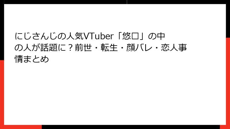最後に、VTuberの「中の人」を探る楽しさは、キャラクターと演者の融合にあります。悠亜のように、裏側を知ることで愛着が深まる存在は貴重。皆さんも、彼女の配信をチェックして、謎のベールに思いを馳せてみては? これからも悠亜の活躍を応援しましょう!