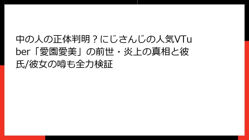 しかし、ファンの好奇心は尽きず、声質、話し方、趣味の一致、過去の配信アカウントの痕跡などから推測が飛び交います。愛園愛美の場合も例外ではなく、デビュー直後から「前世(中の人がVTuberデビュー前の活動名)」や「転生(前世からの移行)」の噂がネットを賑わせました。これらの情報はあくまでファンコミュニティの憶測に基づくもので、確定したものではありません。以下に、主な噂を箇条書きでまとめます。